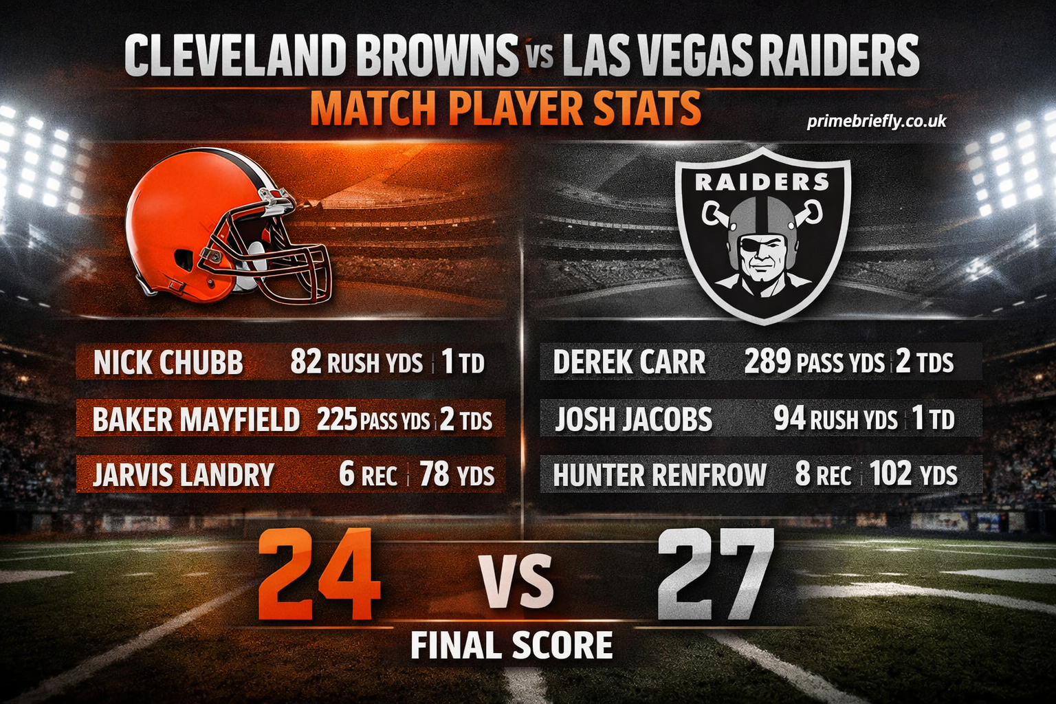 These moments strongly influence cleveland browns vs las vegas raiders match player stats.